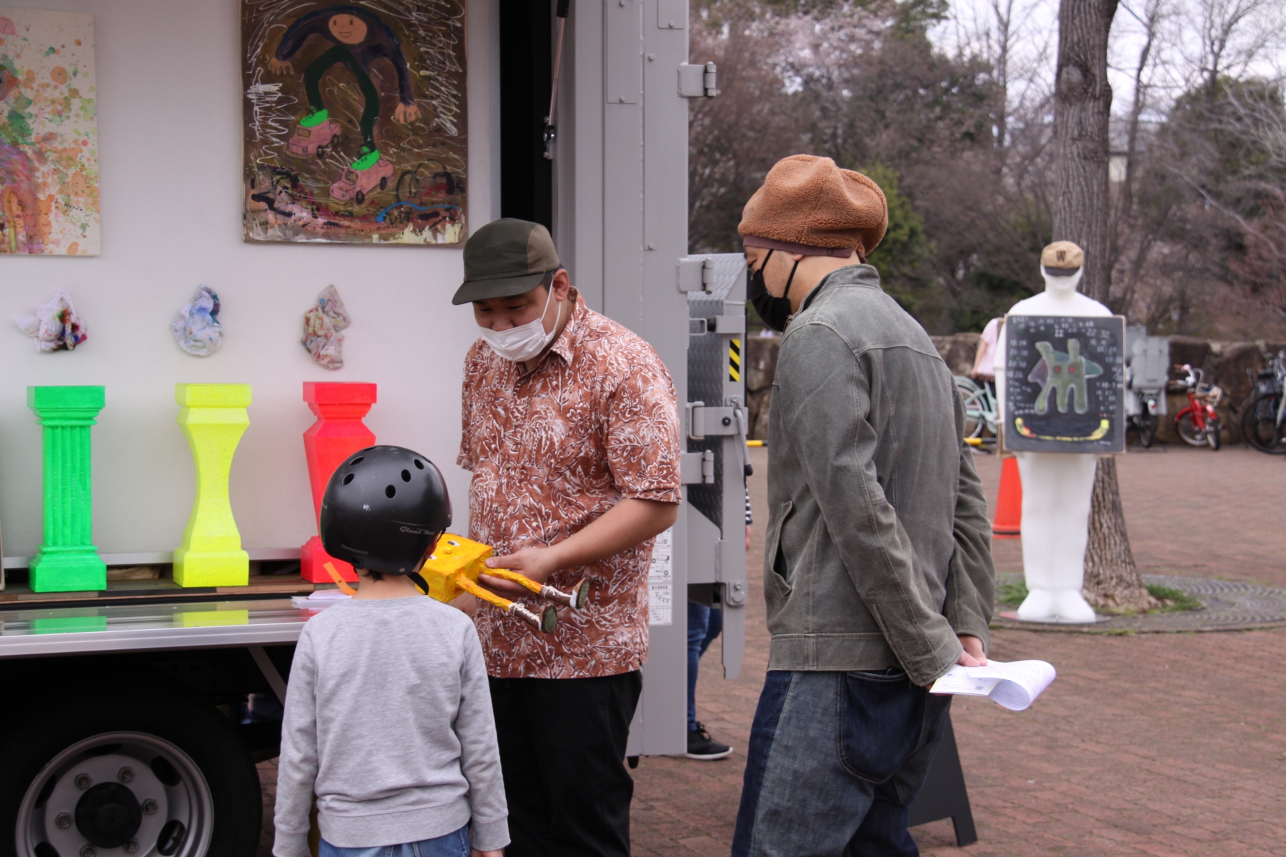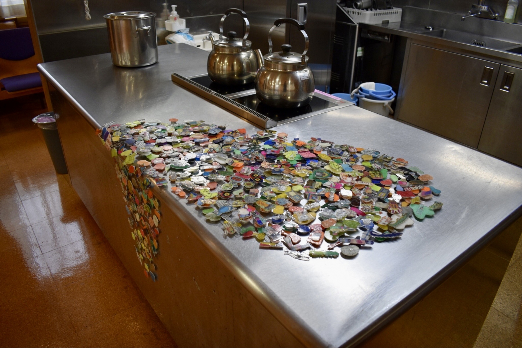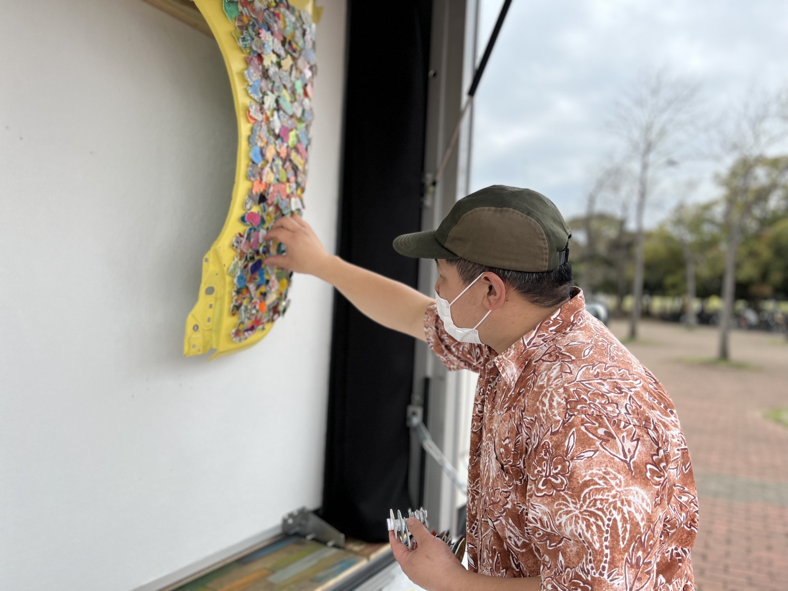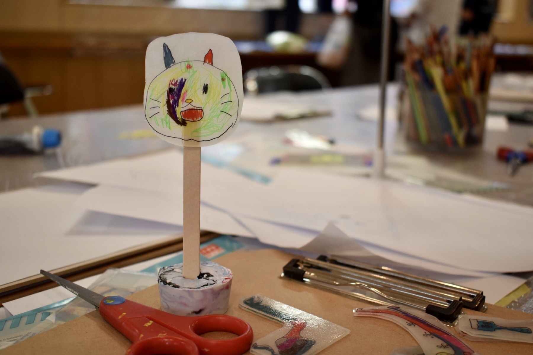 ワークショップではイベントテーマに合わせてプラ板マグネットを制作し、堀江が作品でも使用する廃材などの支持体や、会場となる場所の建具や家具などに貼りつけて楽しみます。