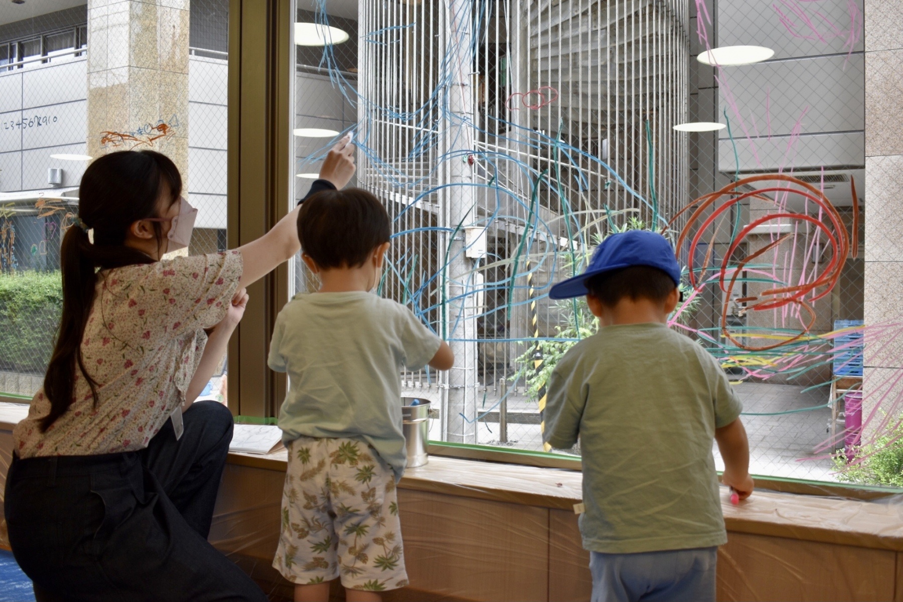 色を空間に配置していくことで風景が変容していくさまを楽しみます。